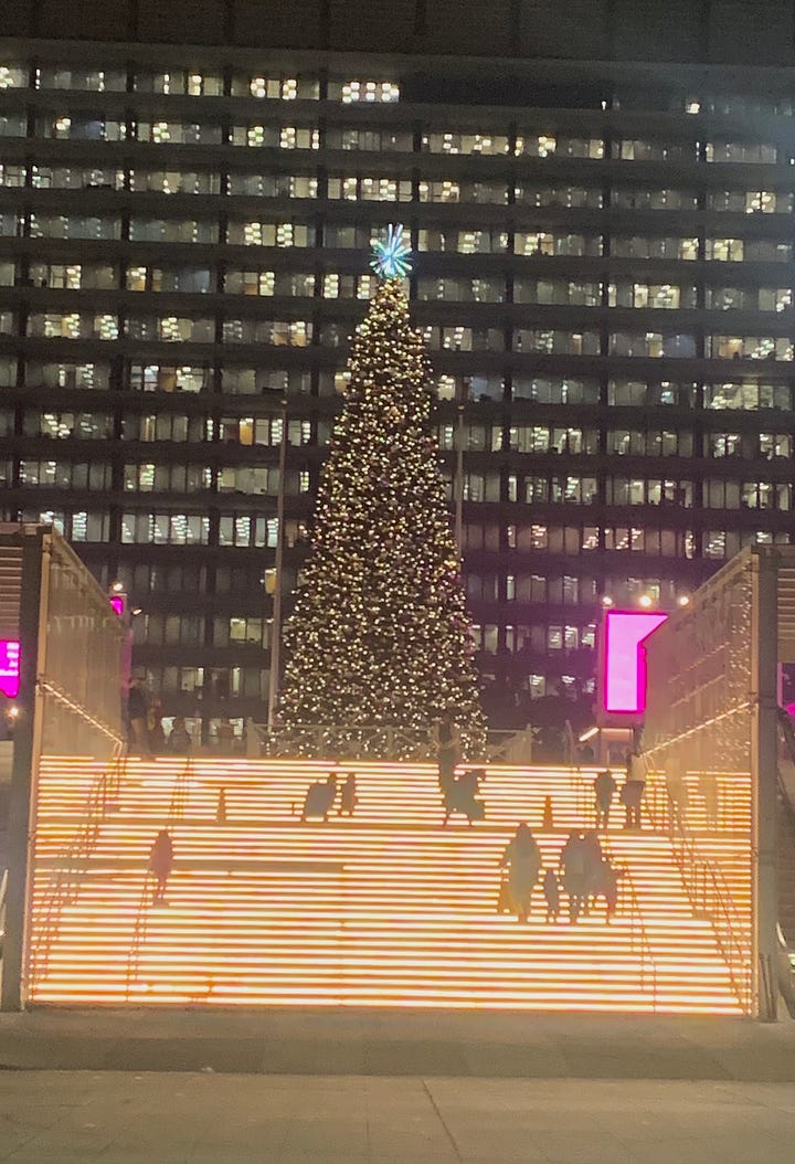 This year we’ve officially moved out of Little Kid Christmas and onto Big Kid Christmas. I can definitely sense my kids (ages 11 and 15) humoring me rather than fully enjoying some of our traditions, like watching Rudolph and Frosty or joining an outdoor holiday sing-a-long downtown like we did last night. Christmas with big kids is fun in a different way, and so much less exhausting. I miss the footed jammies and Christmas picture books, but I don’t miss the overwrought toddlers or inevitable exhaustion and sickness that crept into the holidays.