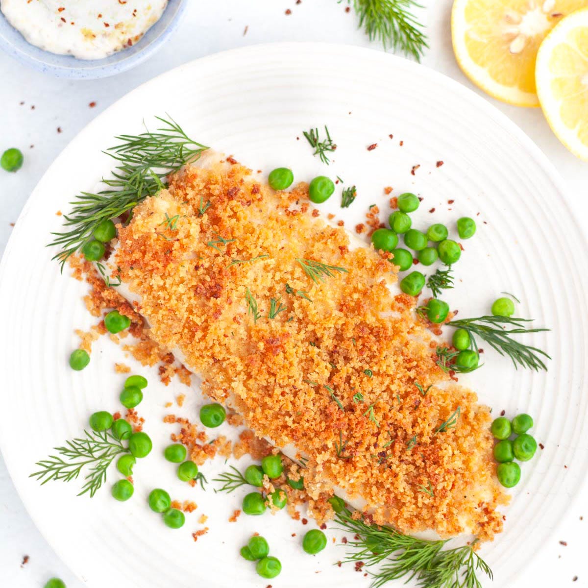 Use any type of thin white fish fillets for this recipe. A lemon-dill creme fraiche sauce melts into the fish as it bakes, making the fish moist and flavorful. Toasted panko breadcrumbs give the fish a crunchy topping.